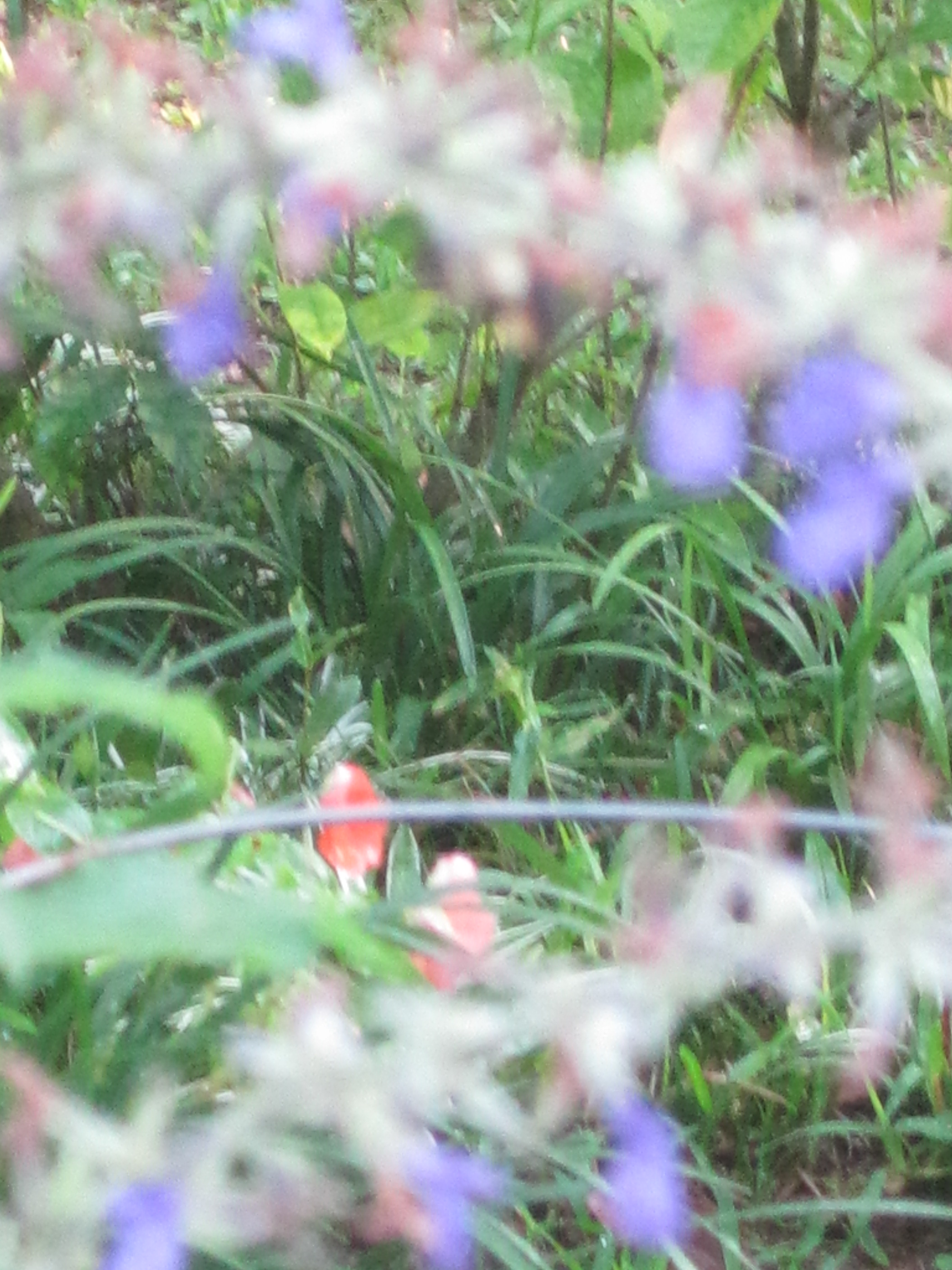 I tried to capture this bee soaking up the salvia and look what I got. But I like it. You are just going to have to trust me that it is Black and Blue Salvia and there is a bee or two nestled down in there. I guess you will have to stop by and see for yourself and hear those bees. A beautiful sound.