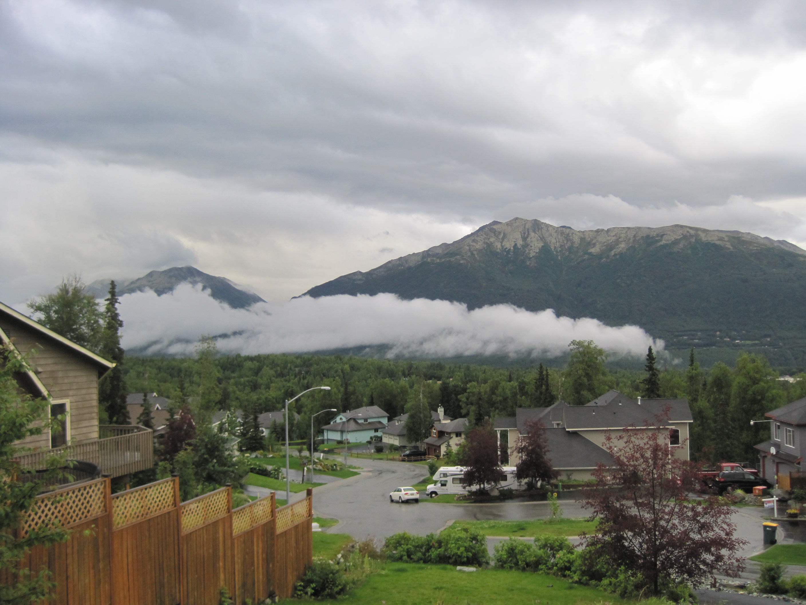 I have a couple of pictures I want to share, I think I will start with this one, it takes me to Alaska’s clean fresh air. The weather was in the 50-60-70 degree range. This view is from their deck. It is a reminder for me. The mountains were awesome, as mountains are, but to watch these clouds would come down the valley. That morning, they were movin’. Sometimes in the evening if the conditions were right they would go back up the valley. It was so peaceful to watch and a reminder to me in the whole scheme of things, I am just a spec. Know what I mean?