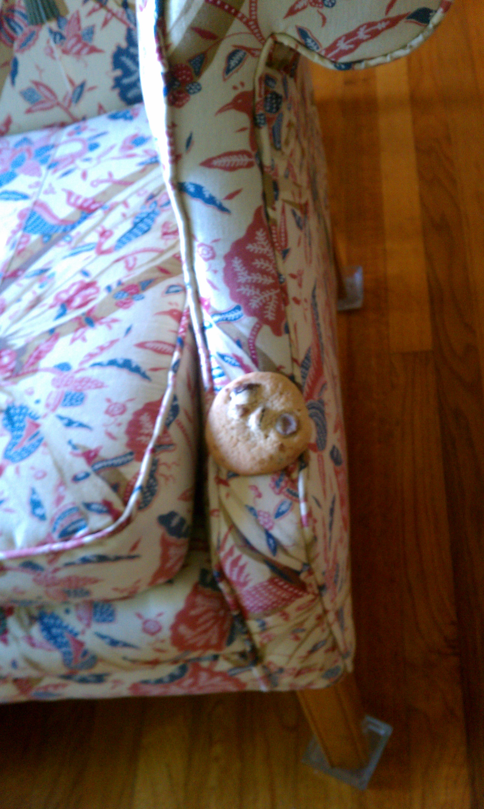 A few days after a group of high schoolers came to my home for a dinner-meeting, it was crowded but what else is new? It is a little cottage. Right? A couple of days later, ok a week went by, I walked by the sofa and guess what I found? You guessed it. Do I need to say more? No.
