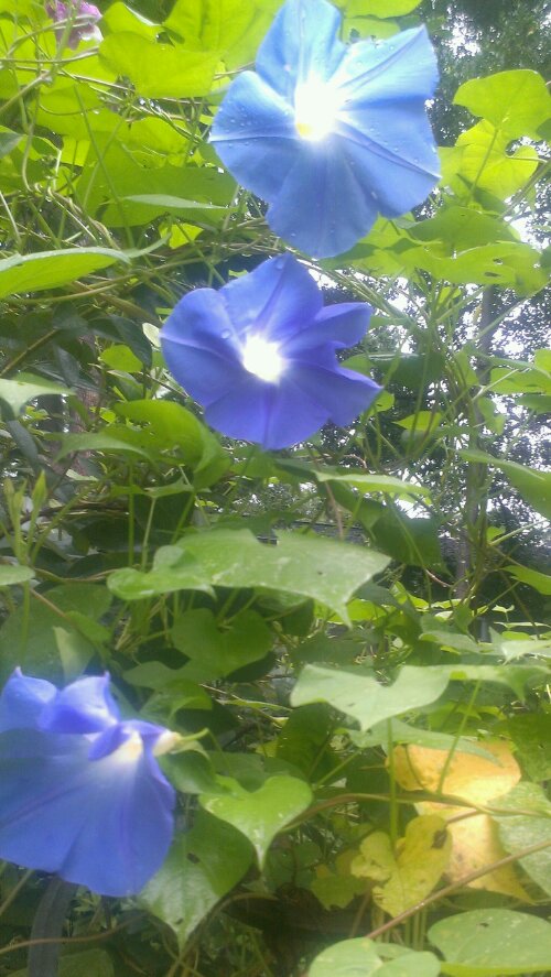 My Morning Glory bush is now blooming. Hurrah! I can’t say it is breath taking, but it is August, dog days of summer as they say. It is practically the only color other than green in the back yard with a few knock out roses and zinnas hanging in there, of course. I’m jumping for joy, I’m happy it was worth the wait.