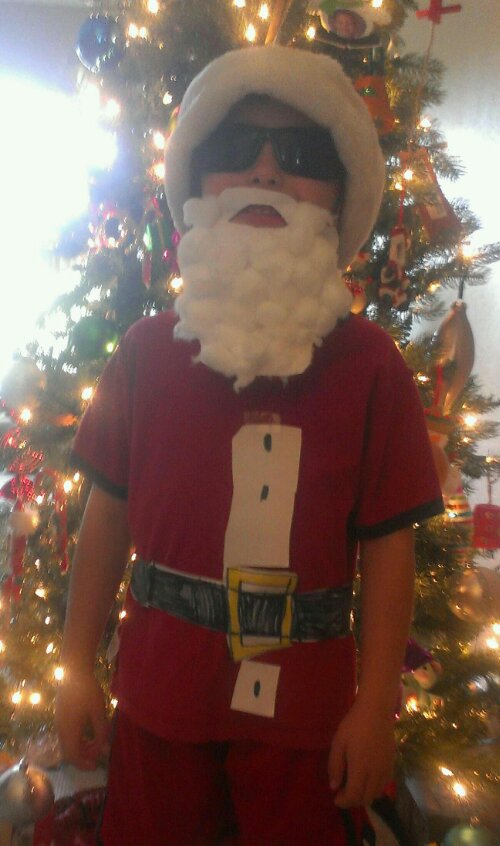 Meet Jake, a seven year old friend of mine. I had lunch with his family and some friends today. Jake made his costume, he told me it took two days, but he only wore it for a few minutes. It was just long enough to get his picture taken. I loved his very creative design… paper beard, paper belt, paper button.
