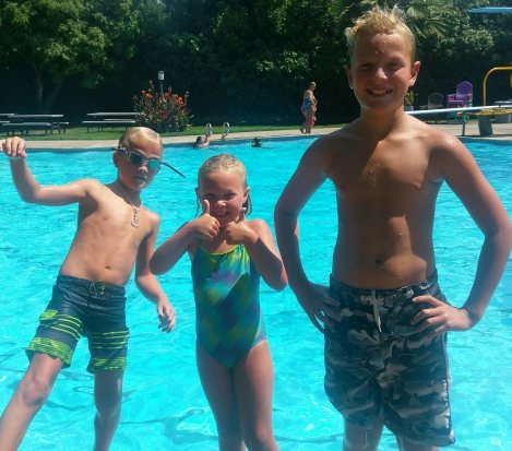 They all have blonde hair and blue eyes, but in the summer, oh my more blonde, more vivid blue. All competitive swimmers, but the first of August swim practice and meets are over and we can just play in the water.