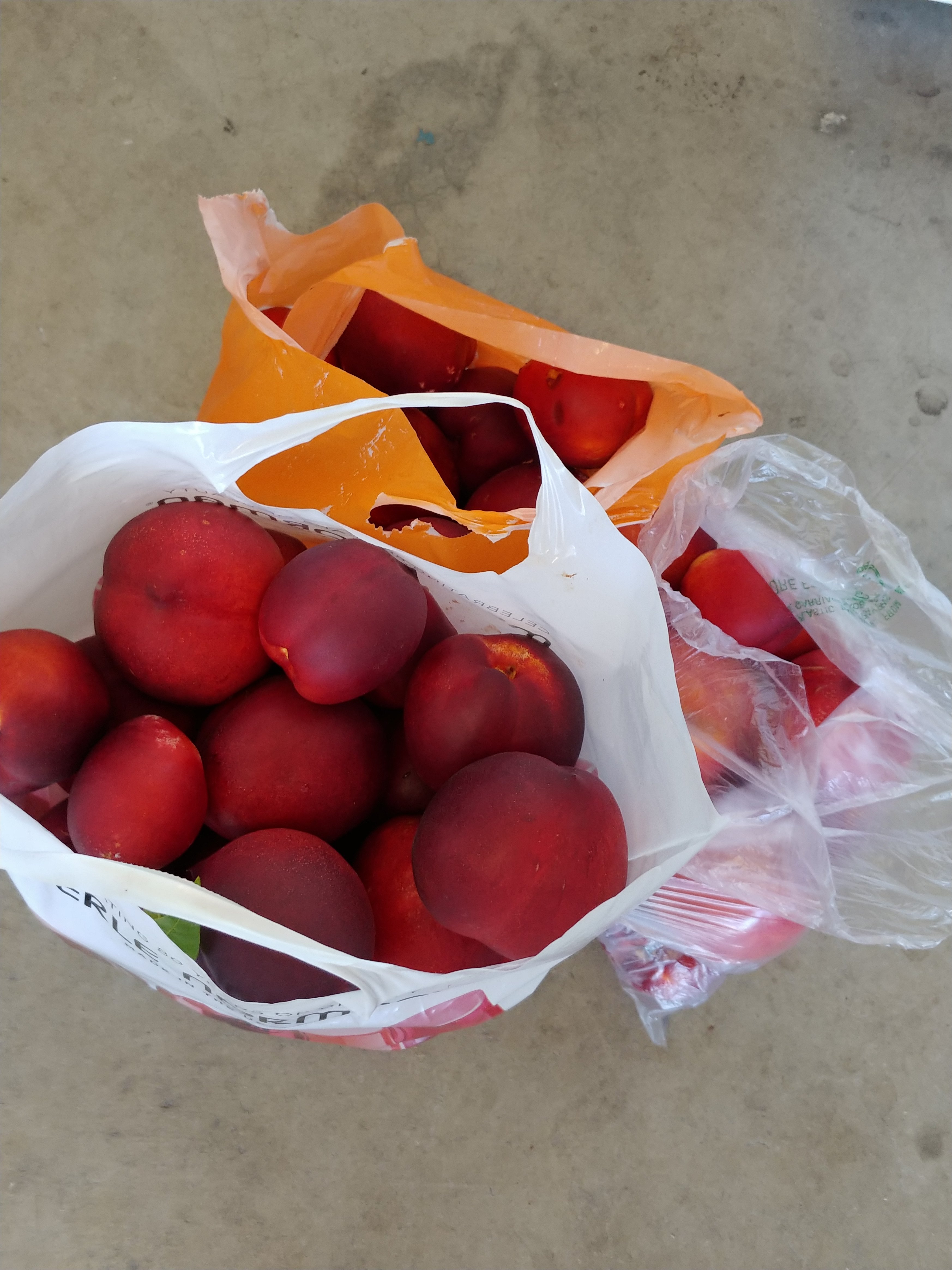 These fresh nectarines were picked yesterday from Mike’s yard. Mike is Peter and Denise’s next door neighbor. These nectarines are so beautiful and delicious.