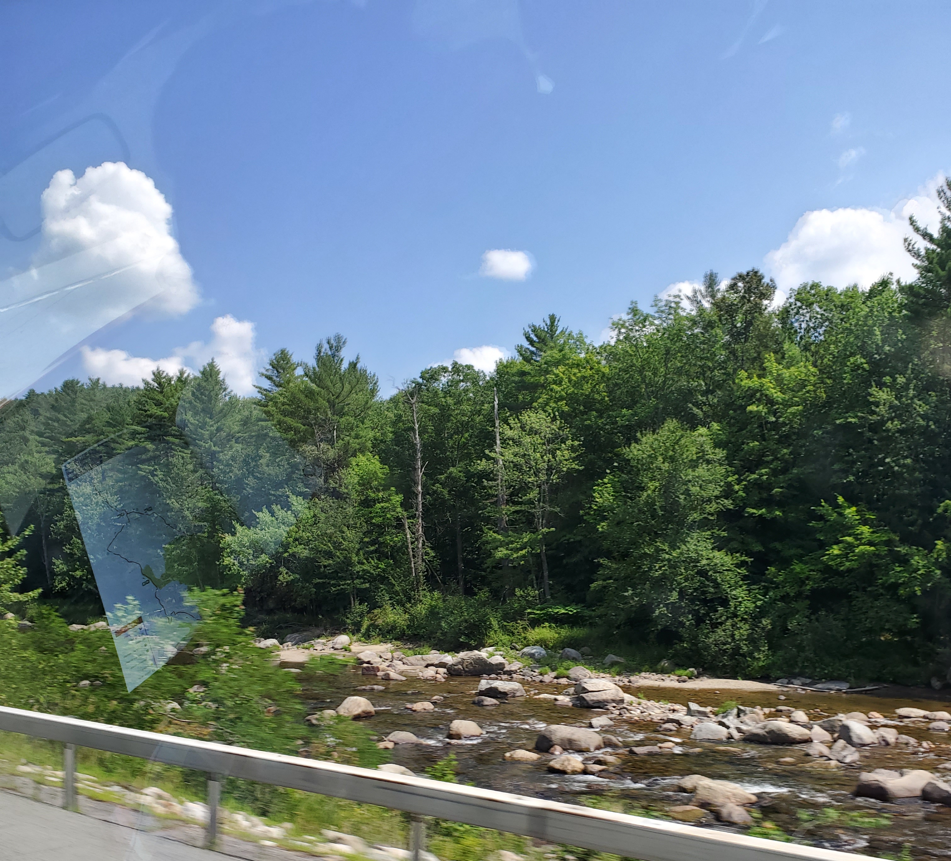 This Sunday is the Lake Placid Ironman. My daughter Jamie is competing. She’s amazing and I’m inspired by her. We flew to Albany, NY then traveled north on I-87 and US -9north. Here’s one of my back seat photos. What a beautiful day.
